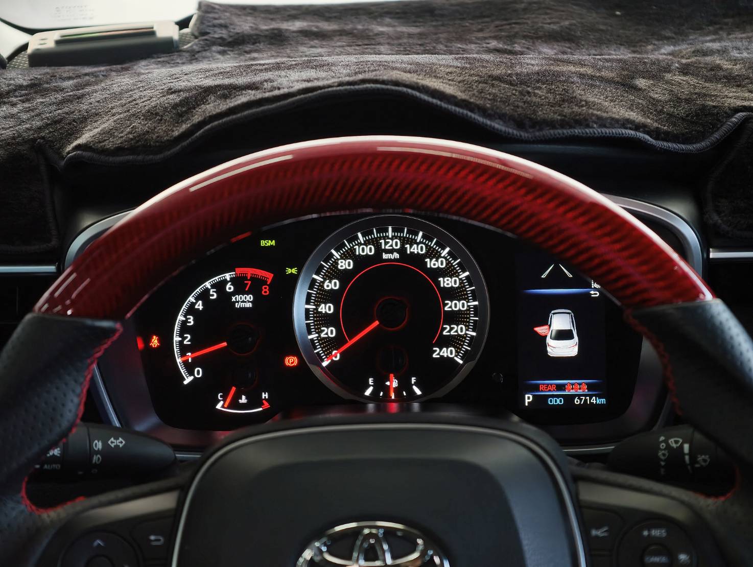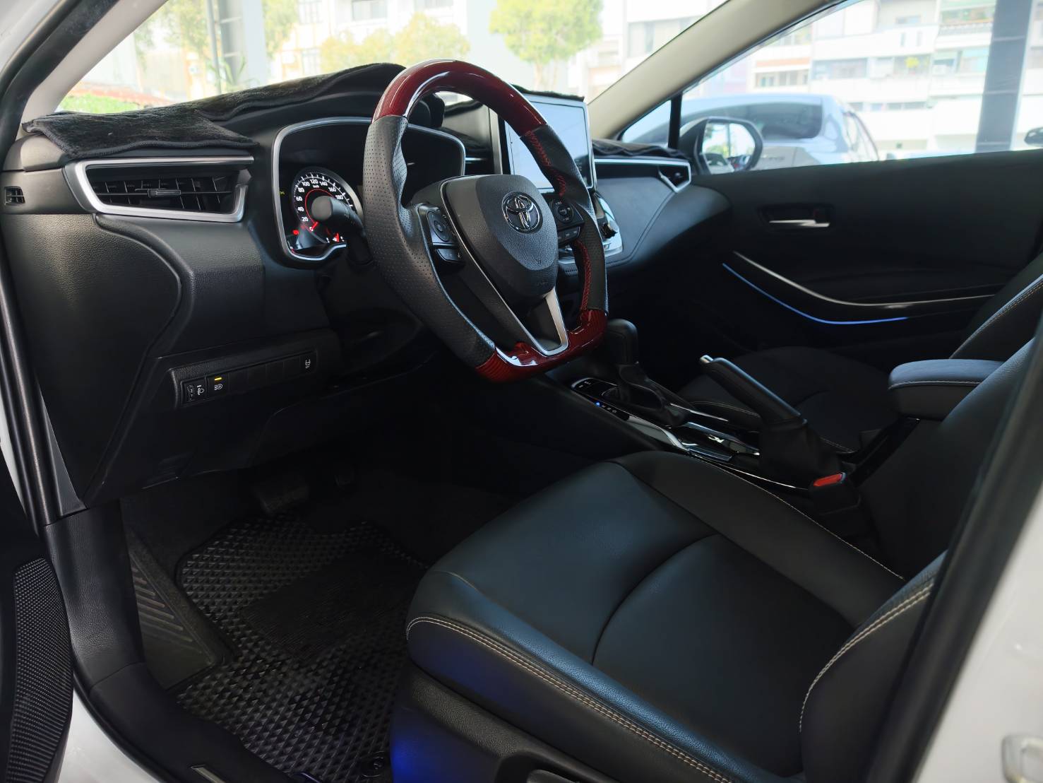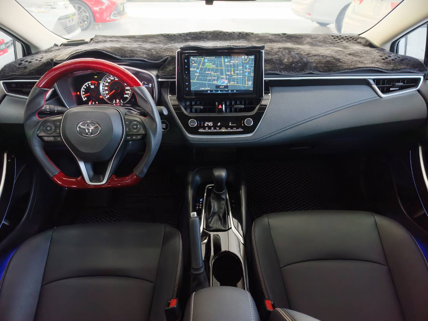 並再自行升級碳纖維加粗 平把方向盤
